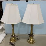Brass Candle Stick Style Lamps, new shades, 32"h Brass Candle Stick Style Lamps, new shades, 32"h