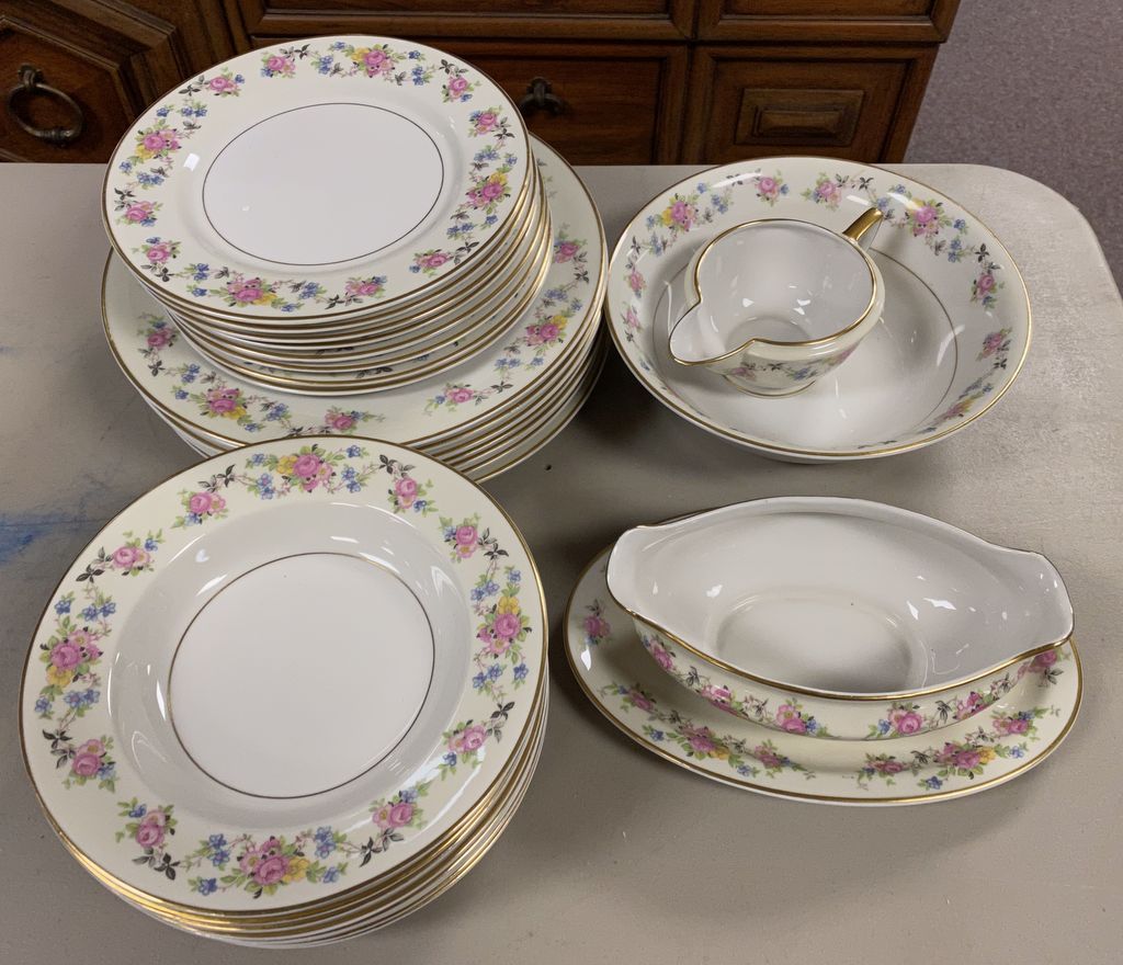 Jackson Featherweight China Set, made in USA, 8 dinner plates, 8 bowls, 8 bread & butter plates, gravy. Jackson Featherweight China Set, made in USA, 8 dinner plates, 8 bowls, 8 bread & butter plates, gravy.