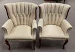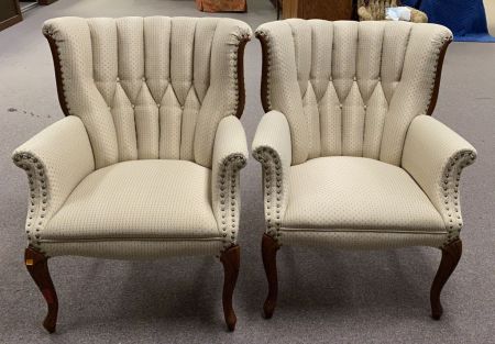 Pair of French Style Arm Chairs, button tufted, good condition. Pair of French Style Arm Chairs, button tufted, good condition.