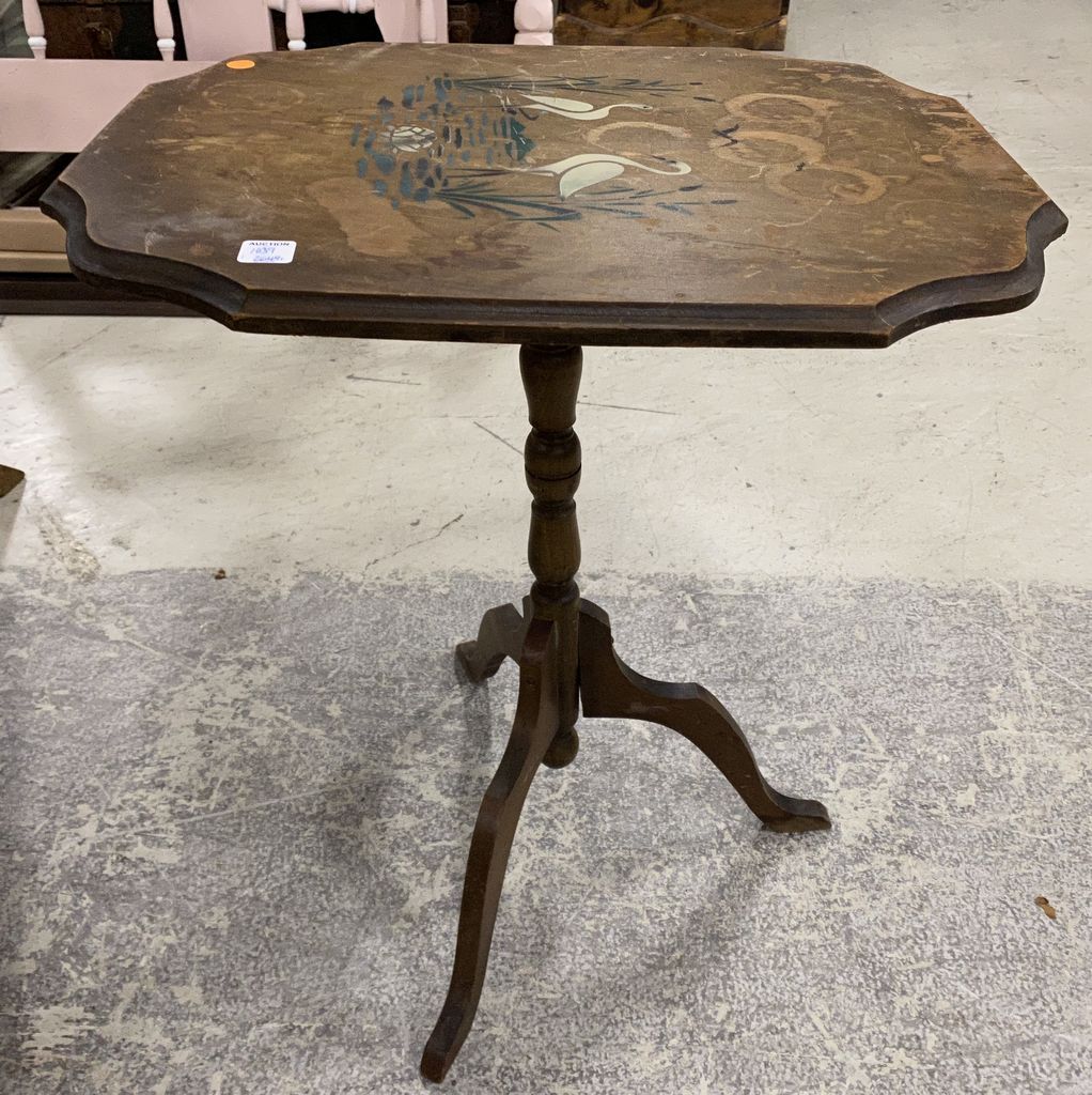 Small Vintage Tilt Top Pedestal Table, ring marks on top, needs tightening, needs work, 26"h., 22"w. Small Vintage Tilt Top Pedestal Table, ring marks on top, needs tightening, needs work, 26"h., 22"w.