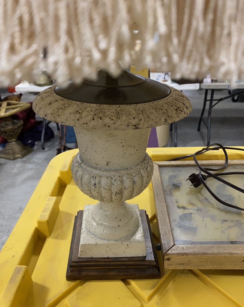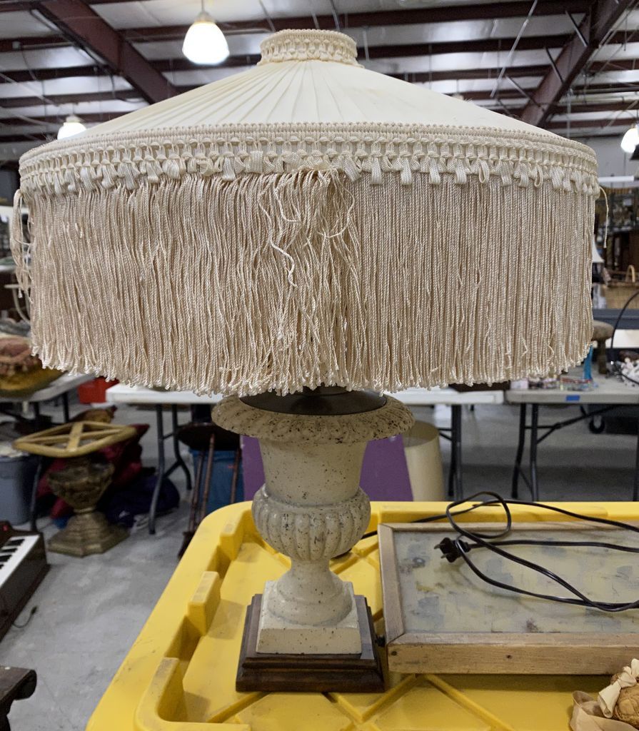 Metal Painted Urn Table Lamp, fancy shade, 22"h. Metal Painted Urn Table Lamp, fancy shade, 22"h.