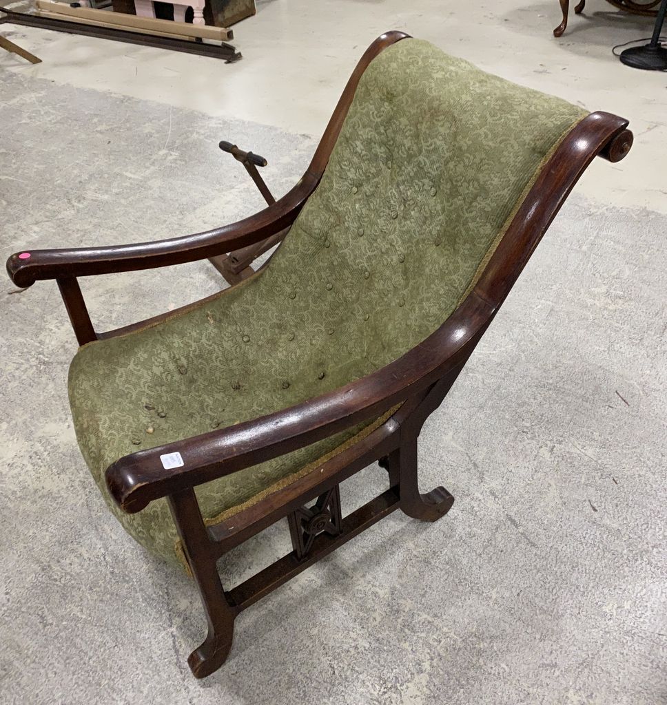 Vintage Mahogany Arm Chair, old fabric cushion, worn, needs work. Vintage Mahogany Arm Chair, old fabric cushion, worn, needs work.