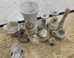 Porcelain Vases and Candle Holders, hand painted vases, pitchers, creamers, demitasse, sugar. Porcelain Vases and Candle Holders, hand painted vases, pitchers, creamers, demitasse, sugar.