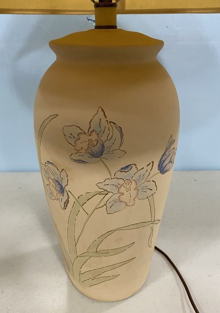 Ceramic Tall Vase Lamp, floral design, with shade, 27"h. Ceramic Tall Vase Lamp, floral design, with shade, 27"h.