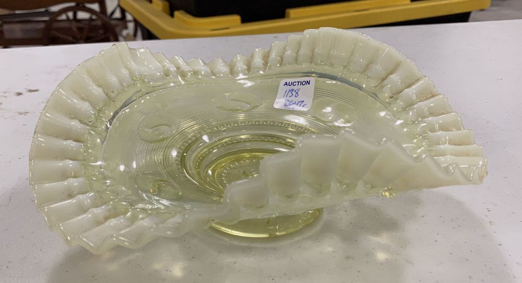 Fenton Style Crimped Rim Bowl, yellow, 8 1/2"dia. Fenton Style Crimped Rim Bowl, yellow, 8 1/2"dia.
