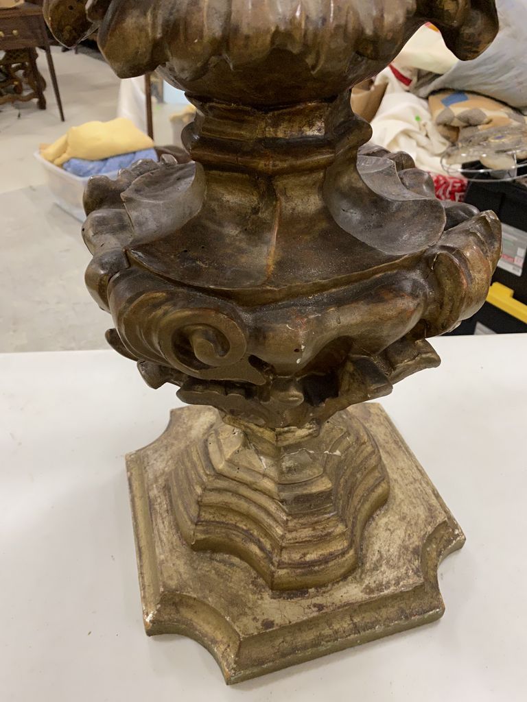 Ornate Plaster French Style Pedestal Base to side table, 20"h., 18"w. Ornate Plaster French Style Pedestal Base to side table, 20"h., 18"w.