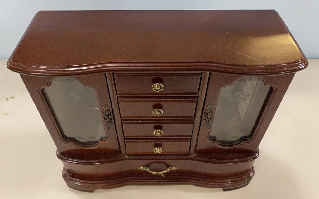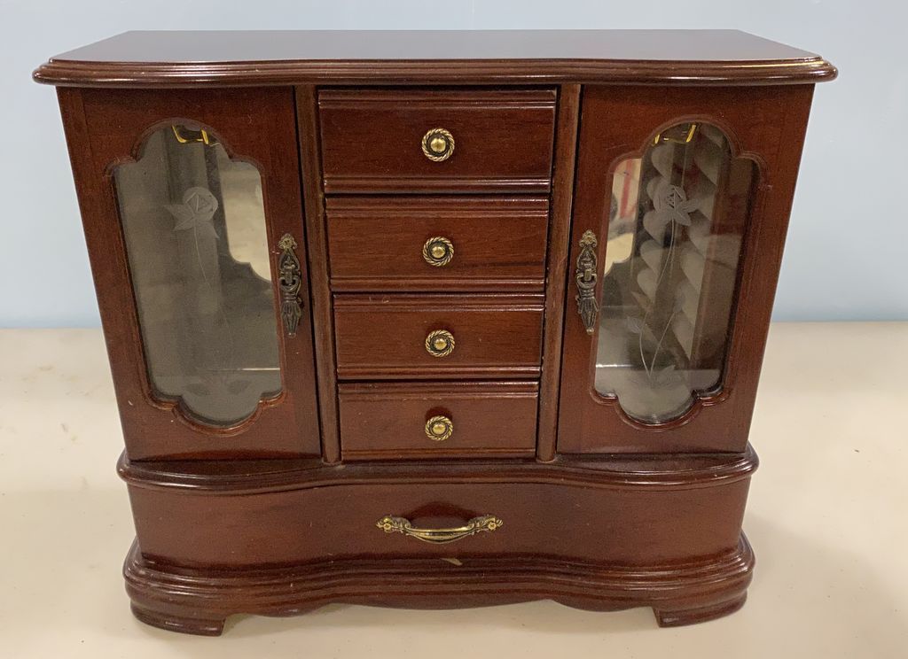 Small Cherry Jewelry Box, side doors, center drawers. Small Cherry Jewelry Box, side doors, center drawers.