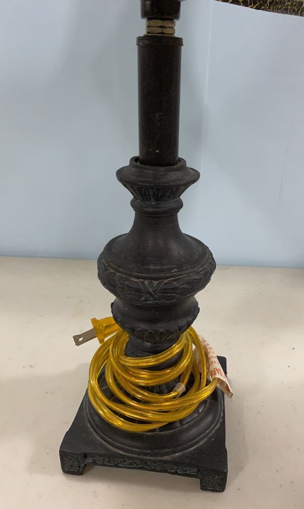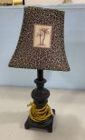 Decorative Small Resin Candle Stick Lamp, with palm tree shade. Decorative Small Resin Candle Stick Lamp, with palm tree shade.