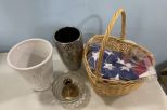 1278 Pottery Vase, Glass Bowl and Woven Basket