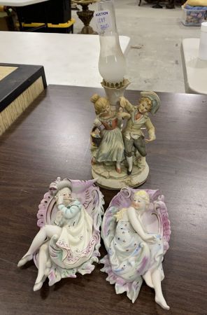 1289 Porcelain Man and Lady Wall Decor, Boy and Girl Figural Lamp