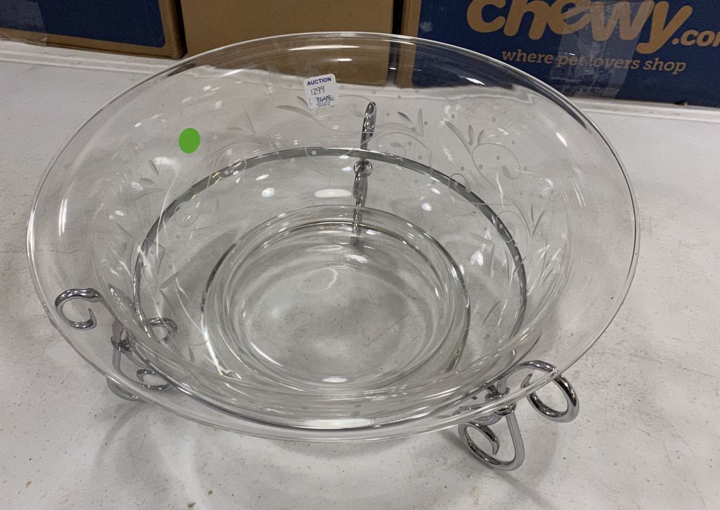 Glass Salad Bowl with Metal Stand, 7"h., 14"dia. Glass Salad Bowl with Metal Stand, 7"h., 14"dia.
