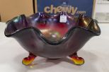 Fenton Style Footed Bowl, Crimped rim, 5"h., 11"w. Fenton Style Footed Bowl, Crimped rim, 5"h., 11"w.
