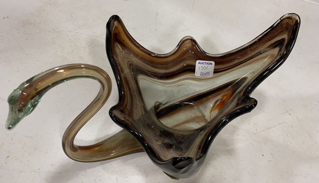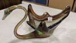 Art Glass Swan Dish, multi color, 13" Art Glass Swan Dish, multi color, 13"