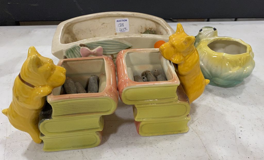 1318 Pottery Dogs, Small Planter, and Small Frog Planter Vase