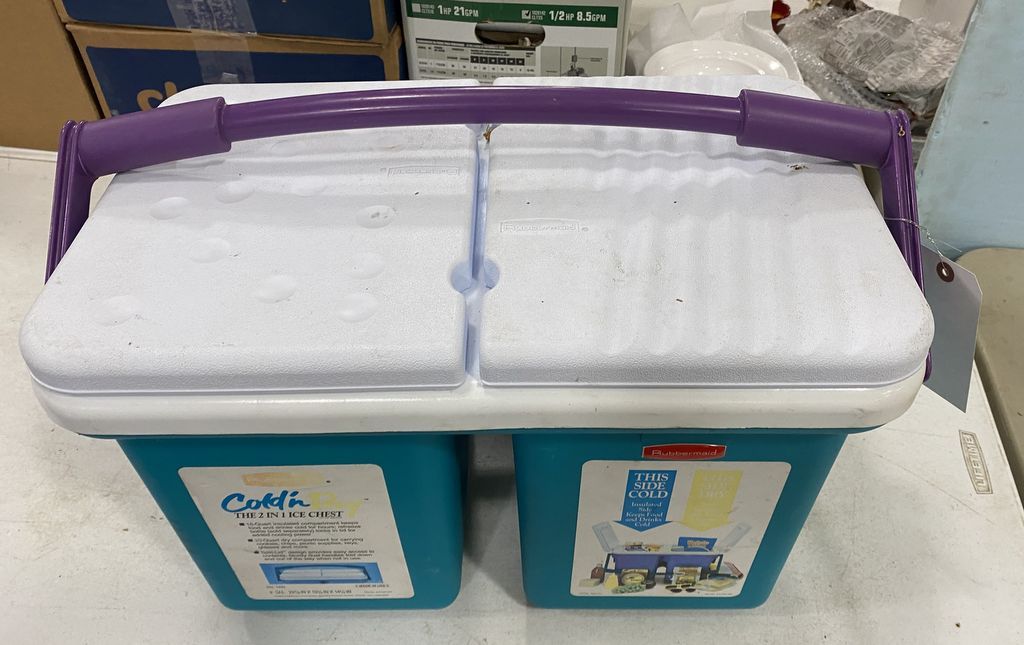 Rubbermaid Cold n Dry Cooler, 2 in 1 ice chest, lightly used. Rubbermaid Cold n Dry Cooler, 2 in 1 ice chest, lightly used.
