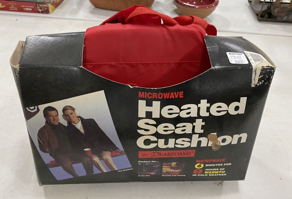 Dearfoams Heated seat cushion, Microwave, in box. Dearfoams Heated seat cushion, Microwave, in box.