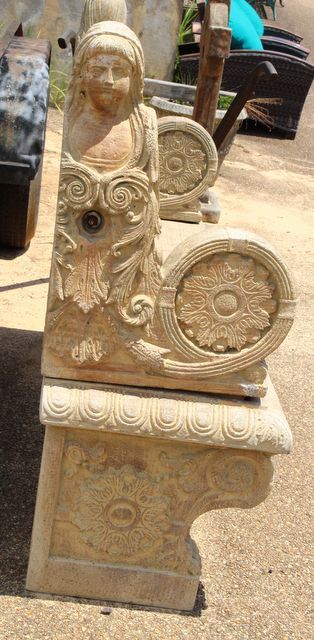 Has claw feet, swags and figures on each end. Measures 69" w x 49" d x 50"h. Please note this item is extremely heavy and you will need to bring help at pickup. Has claw feet, swags and figures on each end. Measures 69" w x 49" d x 50"h. Please note this item is extremely heavy and you will need to bring help at pickup.