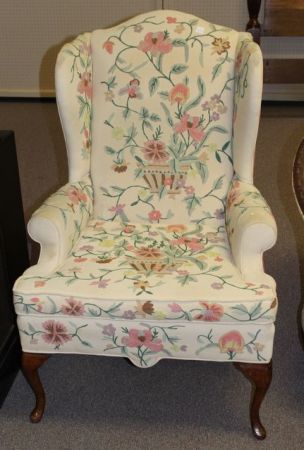 569 Queen Anne Leg Wing Back Chair with Crewel Work Fabric