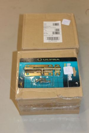 1233 Contractor Lot of Two Boxes of Ten Barrel Bolts in Satin Brass Finish