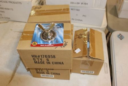 Five boxes of 6 gold trimmed chrome hooks plus one loose one. Five boxes of 6 gold trimmed chrome hooks plus one loose one.