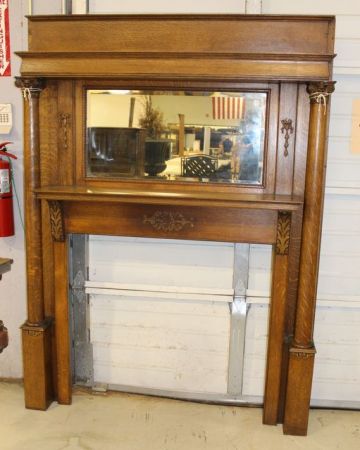 473 Large Golden Oak Mantle with Beveled Mirror