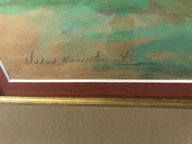 "Colorado" painting signed Mildred Nungester 1945, frame size is 28"h., 33"w. Well known Mississippi Artist, 1912-2009, married to Karl Wolfe. Studied at Colorado Springs Fine Art Center. "Colorado" painting signed Mildred Nungester 1945, frame size is 28"h., 33"w. Well known Mississippi Artist, 1912-2009, married to Karl Wolfe. Studied at Colorado Springs Fine Art Center.