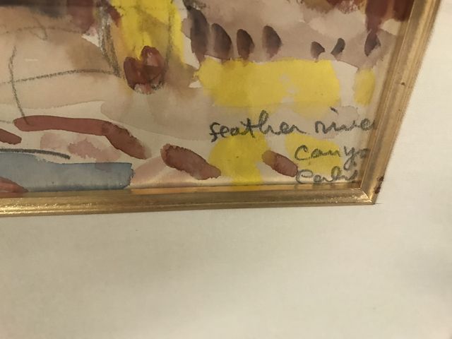 Pencil and watercolor "Feather Ring Canyon", this piece is unsigned Marie Hull work. MTEL Collection piece. Frame is 34"h., 28"w. 1890-1990, born in Summitt, MS. She taught art to many well known artists such as Andrew Bucci, she lived in Belhaven. Pencil and watercolor "Feather Ring Canyon", this piece is unsigned Marie Hull work. MTEL Collection piece. Frame is 34"h., 28"w. 1890-1990, born in Summitt, MS. She taught art to many well known artists such as Andrew Bucci, she lived in Belhaven.