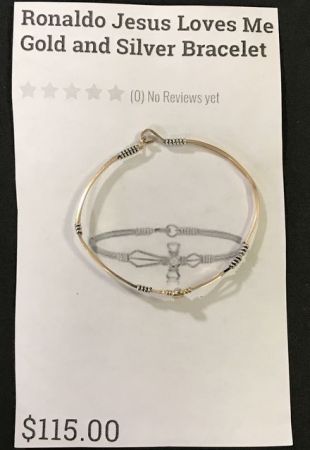 Hand made Jesus loves me gold tone and silver bracelet, by well known designer Ronaldo. Hand made Jesus loves me gold tone and silver bracelet, by well known designer Ronaldo.