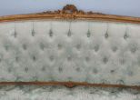Gold Gilt carved parlor settee, light blue floral pattern fabric, some of the frame has chips on paint, antique gold gilt, 40"h., 72"w., 28"w. Gold Gilt carved parlor settee, light blue floral pattern fabric, some of the frame has chips on paint, antique gold gilt, 40"h., 72"w., 28"w.