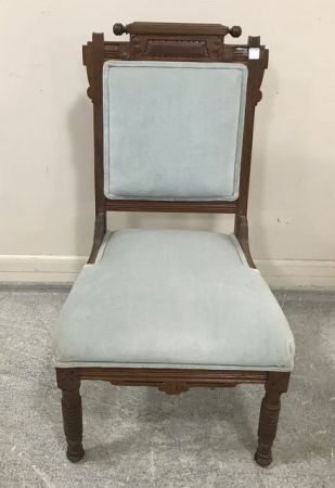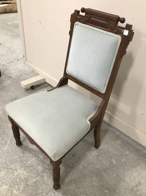 Eastlake style parlor upholstered side chair, carved wood frame, good condition. 37"h. Eastlake style parlor upholstered side chair, carved wood frame, good condition. 37"h.