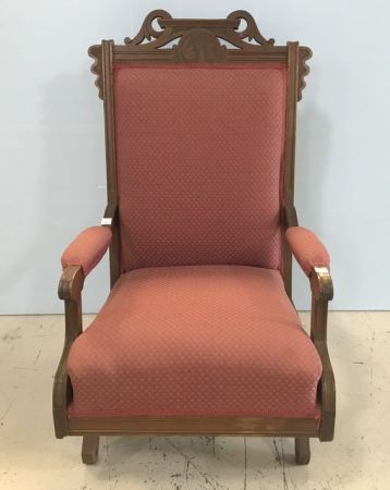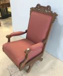 Antique Victorian Eastlake Style Parlor Arm Chair, has crack on back wood frame, 40"h. Antique Victorian Eastlake Style Parlor Arm Chair, has crack on back wood frame, 40"h.