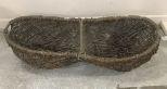Large woven antique carrying basket with handle, has some wear, 46"w., 18"d. Large woven antique carrying basket with handle, has some wear, 46"w., 18"d.
