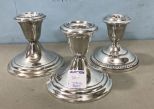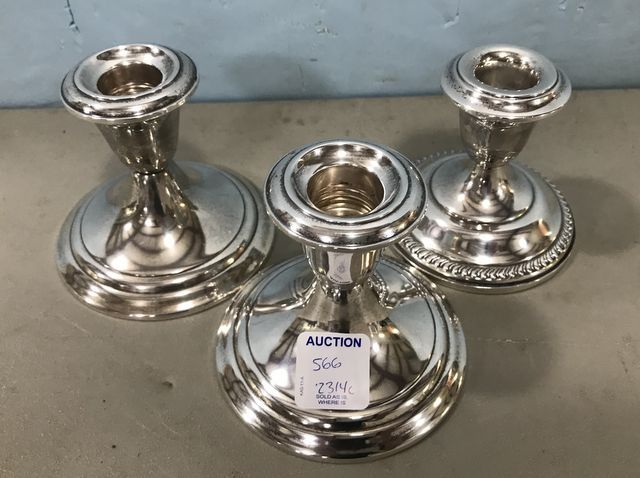Empire sterling candle holder 3"h., pair of Gorham sterling candle holders 3 1/2"h. Empire sterling candle holder 3"h., pair of Gorham sterling candle holders 3 1/2"h.