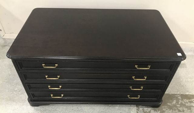 Bernhardt furniture co., dark finish map chest, four drawers, 24"h., 48"w., 28"d. Bernhardt furniture co., dark finish map chest, four drawers, 24"h., 48"w., 28"d.