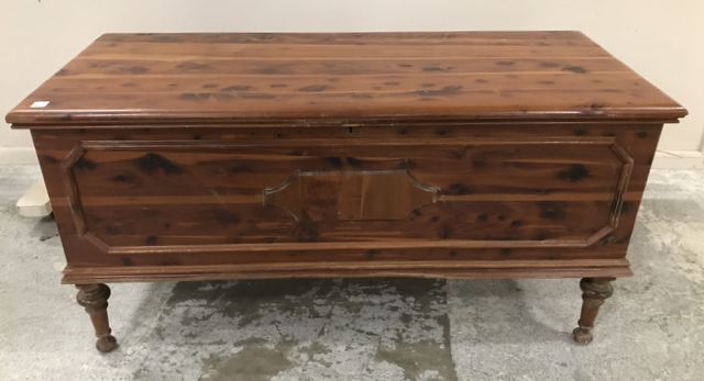 Vintage Lane Cedar chest, on legs, has some wear, sturdy piece, 24"h., 48"w., 20"d. Vintage Lane Cedar chest, on legs, has some wear, sturdy piece, 24"h., 48"w., 20"d.