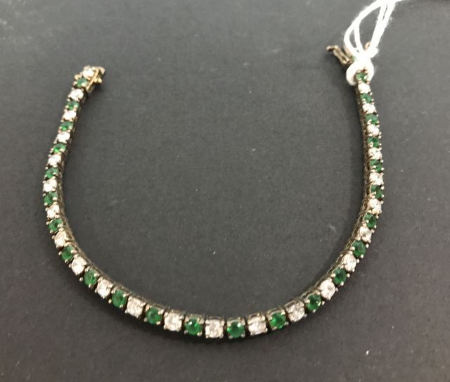 Marked .925 green and clearstone bracelet. Marked .925 green and clearstone bracelet.