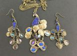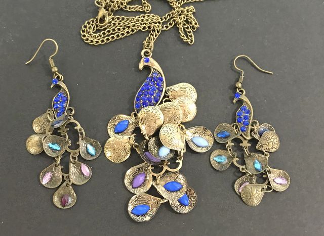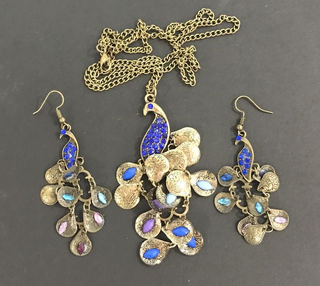 Vintage style peacock necklace 13"chain, pair matching earrings. Vintage style peacock necklace 13"chain, pair matching earrings.