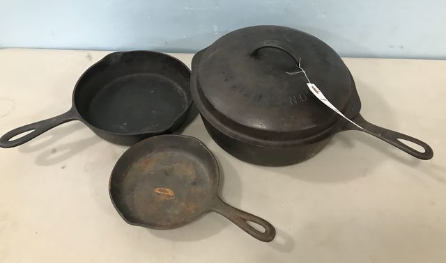 Wagner N0. 8 skillet, 85 b iron skillet, small iron skillet. Wagner N0. 8 skillet, 85 b iron skillet, small iron skillet.