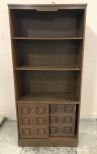 Contemporary pressed wood two shelf bookcase, bottom slide doors with inner shelf, 68"h., 31"w., 12"d. Contemporary pressed wood two shelf bookcase, bottom slide doors with inner shelf, 68"h., 31"w., 12"d.