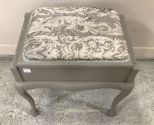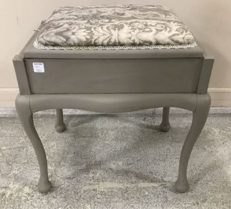 Painted sewing bench with cushion seat, Queen Anne style, lift top storage, Atcraft maker mark, 22"h., 19"w. Painted sewing bench with cushion seat, Queen Anne style, lift top storage, Atcraft maker mark, 22"h., 19"w.