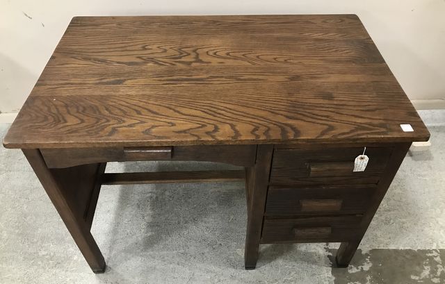 Vintage Oak writing desk, four drawers, Greenville, MS, 30"h., 42"w., 26"d. Vintage Oak writing desk, four drawers, Greenville, MS, 30"h., 42"w., 26"d.