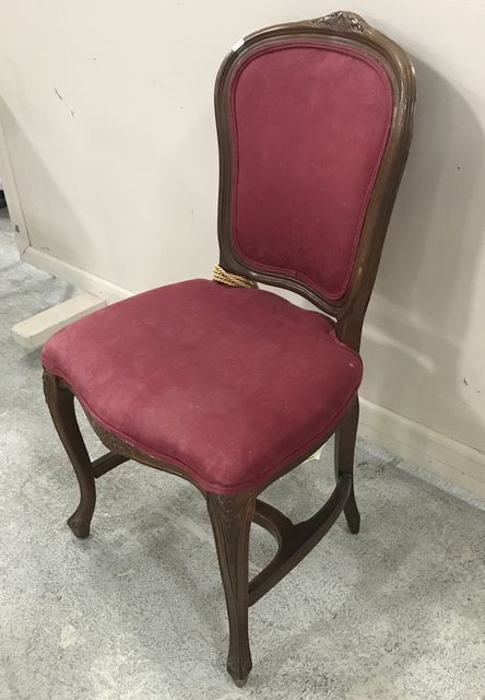 French style carved side chair with red upholstery, has some wear, 38"h. French style carved side chair with red upholstery, has some wear, 38"h.