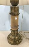Brass and wood decor table lamp, needs a outlet plug, 33"h. Brass and wood decor table lamp, needs a outlet plug, 33"h.