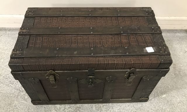 Modern faux alligator skin style lift top storage trunk, 14"h., 23"w., 13"d. Modern faux alligator skin style lift top storage trunk, 14"h., 23"w., 13"d.