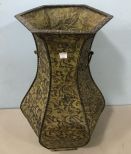 Modern large ornate metal planter, made in china, 26"h. Modern large ornate metal planter, made in china, 26"h.