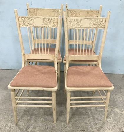 1142 Four White Vintage Oak Side Chairs