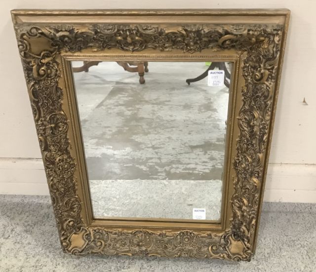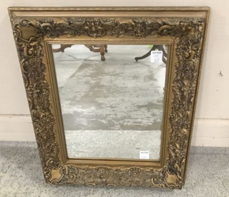 Wood Ornate Gold Painted Framed Mirror, 19"h., 16"w. Wood Ornate Gold Painted Framed Mirror, 19"h., 16"w.