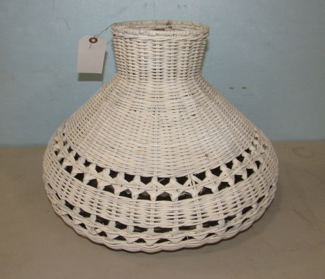 White painted wicker floor lamp or table lamp shade, 13"h. White painted wicker floor lamp or table lamp shade, 13"h.