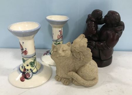 1245 Gail Pittman Candle Holders, Resin Statue, and Cat Figurine