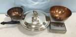 1348 Silver Plate Covered Skillet, Copper Pieces, and Monogrammed Trinket Box